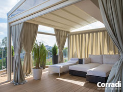 „Essentialität ist perfekt”, war die Meinung von Leonardo Da Vinci. Bei Corradi haben wir uns von diesem Motto für unsere Arbeit inspirieren lassen, wie das Modell Pergotenda® Palladia® deutlich zeigt, das aus einem gezielten Prozess des Verzichts auf alles Überflüssige entstanden ist. Dabei haben wir stets das Ziel vor Augen, Ihrer Zeit Raum zu schenken.